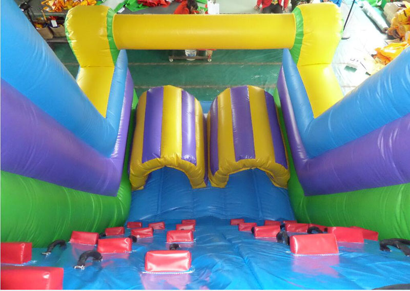 Den utfordrende oppblåsbare hindringen er laget av høyfast PVC-presenning, trygg og slitesterk. Veggen rundt den er høy nok til å beskytte deg mot å falle ut. Å gli fra topp til bunn vil være veldig spennende. Når du glir ned, vil du ikke falle på gulvet. Det er et trinndesign for å beskytte hoften og føttene dine. Å klatre fra bunn til topp, akkurat som å klatre, er de oppblåsbare løpshindringene en fantastisk utendørsopplevelse.