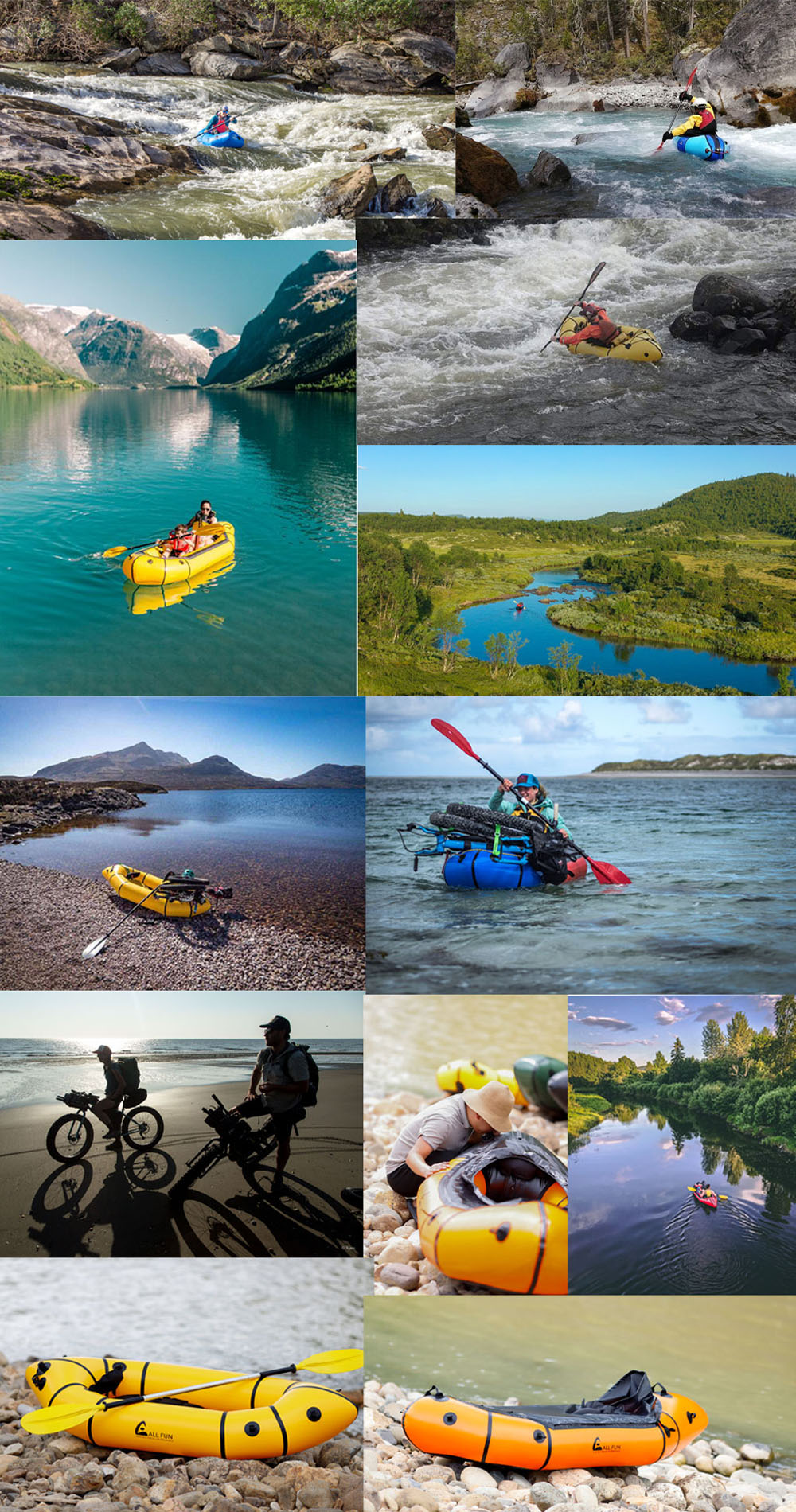Dette er et populært design for packraft. Den har spraydeck, og den har en fast spraydeck. Spraydecket kan beskytte deg mot vann. En packrafts-pakke er liten i størrelse, den kan pakkes lite nok, og den er laget av sterkt og lett tpu-materiale, så den er lett nok til å bæres i en ryggsekk. Den lille størrelsen og minimale vekten gjør packrafts perfekte utendørsspill for turgåere, syklister og andre typer utendørssport.