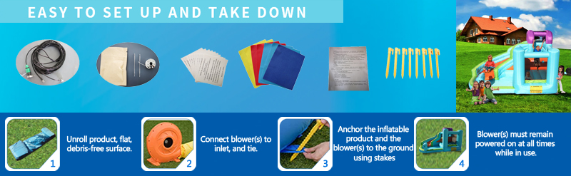 A: Vi har 3 fabrikker for å lage forskjellige produkter. Hovedproduktene våre er som følger: hoppeborger til kommersiell bruk/hjemmebruk, kombinasjoner, tørre/våte sklier, hindringer, telt, kinolerret, oppblåsbare kajakker, flåter, packraft, oppblåsningsrør og vannspill.