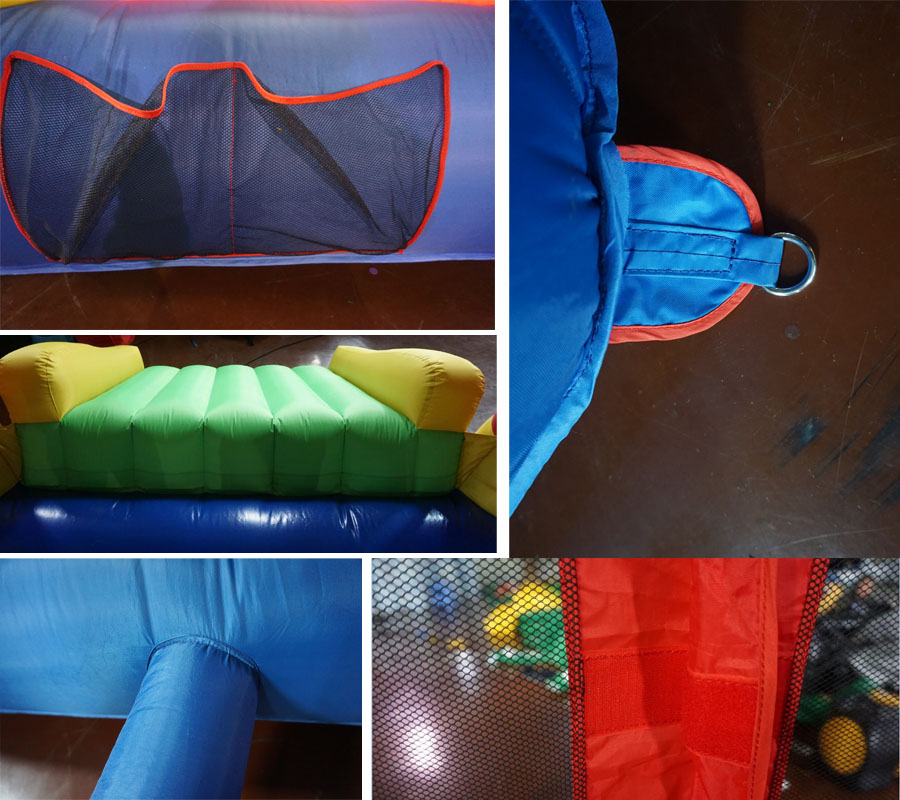 Morsomt hoppe- og skliehus for barn, stort nok hoppeområde for 2-3 barn, omgitt av god kvalitet og høy nok borrelås for sikkerhet, som beskytter barna dine mot å falle. Søylen med luftoppblåsing er stabil og ikke lett å falle ned selv om barnet lener seg på den. Den fantastiske store sklien gir ekstra spenning til denne hoppesklien. Barna dine vil elske å skli ut av hoppesklien og klatre opp igjen. Den store sklien har plass til to barn.